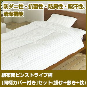 ●防ダニ性・抗菌性・防臭性・吸汗性、清潔機能【今なら送料無料!】組布団ピンストライプ柄[同柄カバー付き]セット(掛け+敷き+枕)【P0622】【ポイント10倍】【10P25Jun09】 ・中わたに東洋紡フィルハーモニーを使用した、清潔布団です。・フィルハーモニー:吸汗速乾、防ダニ・抗菌防臭性の機能の有る中わたです・・・もっと見る ------ |